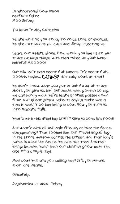 Celebrity Vegetarian Interviews / SoyStache Project / SoyStache Home / A Letter From the Cows / Raw Food Links